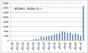 日々の発症数は、2/5から前日比で減少に転じており、発症のピークは超えたのではないかと・・?