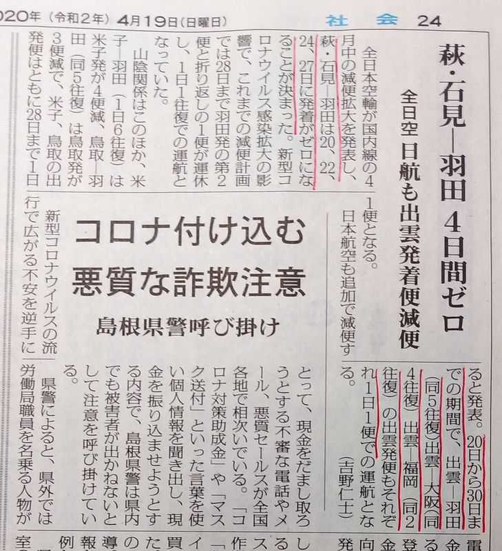 5月末の東京出張を中止し、その後の予定は決めていませんので、飛行機の運行状況等に無頓着となっていましたが、今朝の朝刊の記事によると・・・。