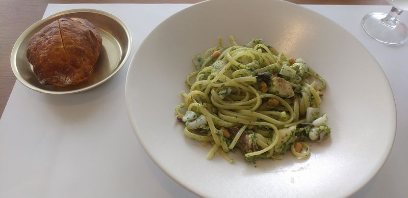 パスタも地元のスズキ、イカ(アオリでは無いかと?)を、使ったジェノベーゼ。