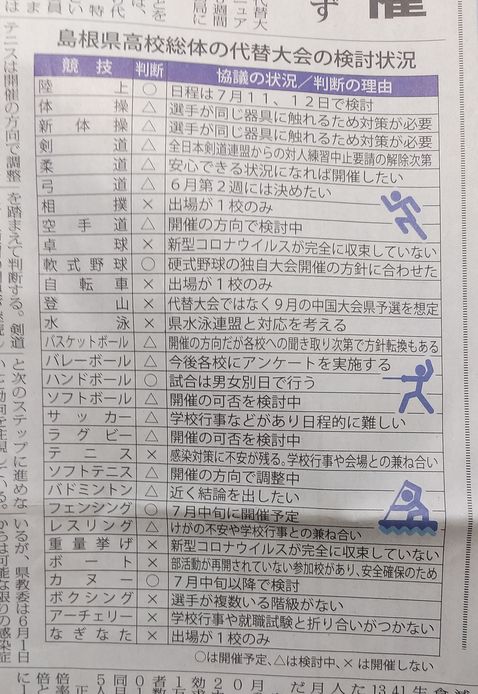 島根県では、中国5県の知事がネット会議で調整したとの事で、6/1からは、中国県内の移動の自粛は、解除される様です。
