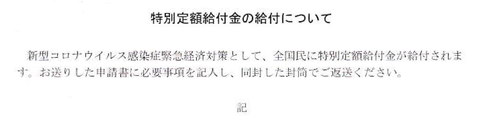 「今週、特別定額給付金の申請書の送付が始まりました。