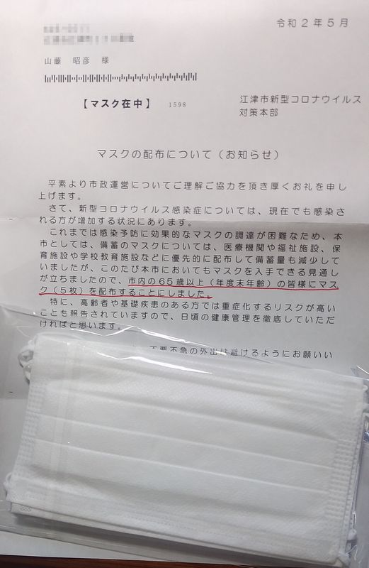 江津市で入手可能となり、65歳以上の方に配布の事でした。