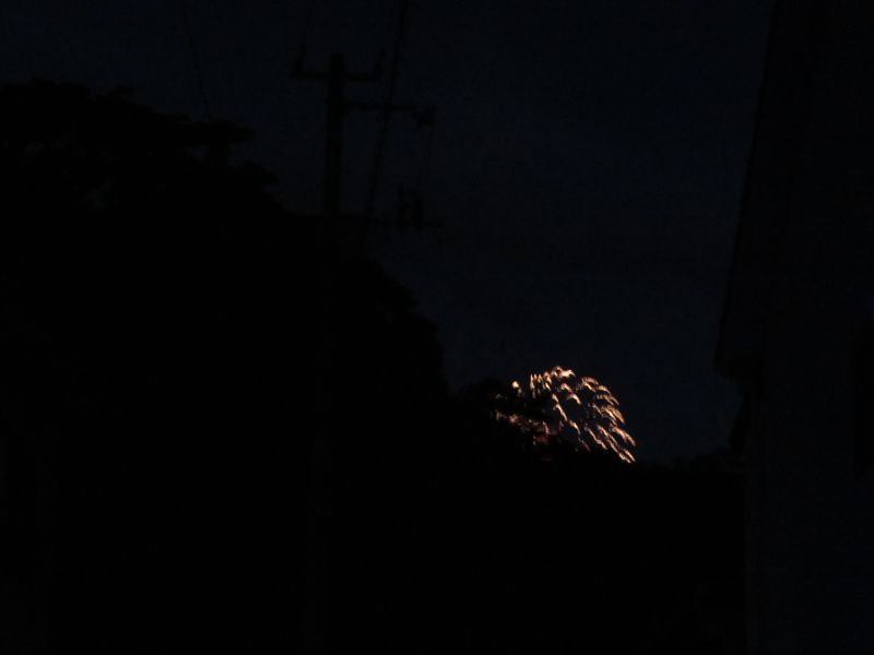 前回の時には、見逃しましたが、まさか2回連続江津で打ちあがるとは思っておらず、ふろ上がりで、汗を乾かしていたら、20:00に突然、花火の爆発音が・・・。
