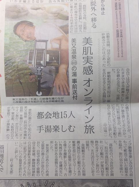 今朝の新聞に、お隣浜田市の旅行代理店石王観光が、手湯を楽しむオンライン旅を仕掛けた。と。