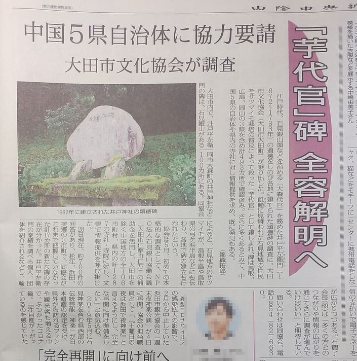 今日の朝刊に、その”「芋代官」碑 全容解明へ”の記事がありました。