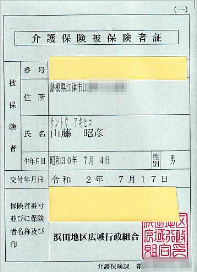 昔の保険証の様な、紙で作られていて、3つ折りです。