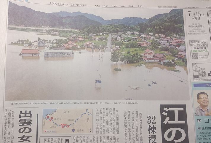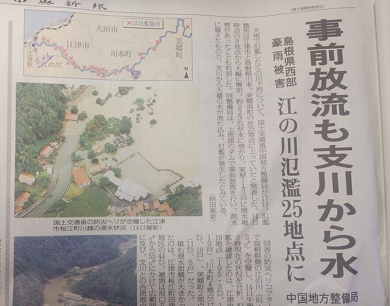 朝のワイドショーでも、全国放送のトップニュースとして、「江津市の江の川で氾濫」として、報道された様で、多方面の方々から、ご心配頂き、電話、メール、SNS等で、ご連絡頂きありがとうございました。