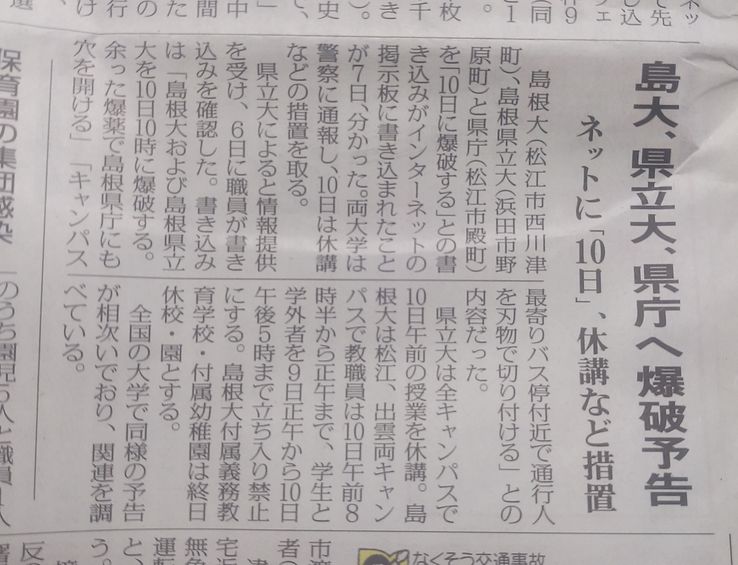 米子市は、島根県のすぐ隣で、島根との交流も多くある所ですので、少々心配です。