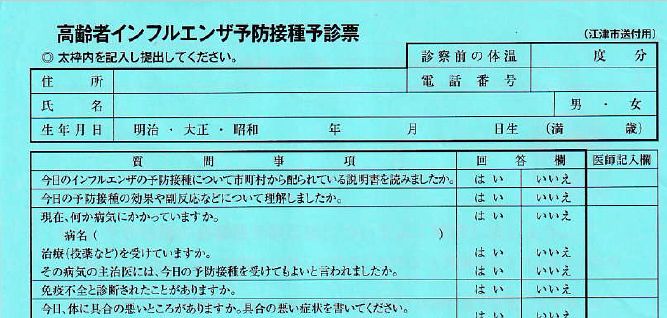 会計時に、来月予診票をお願いしますと、青い紙を渡されました。