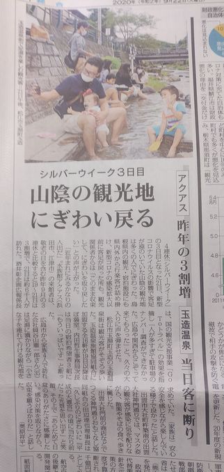 浜田市と江津市にまたがる、ソフトバンクのCMで「島根のおじさま」としてシロイルカが有名になったアクアスでは、昨年のシルバーウィークの3割増しのお客様だった様です。