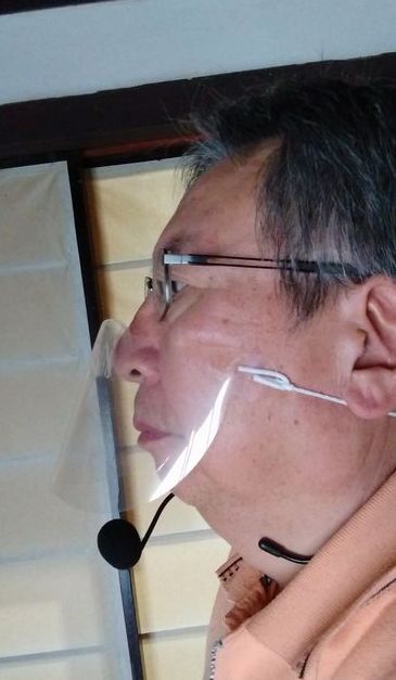“三歳からの同級生”君の会社が、新たなマウスシールドを発売するとの情報を見つけ、早速申し込んだところ、今日届きました。