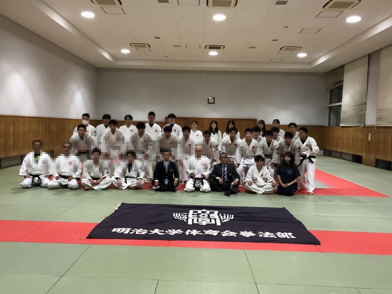 これは、母校明治大学体育会拳法部の現役学生に、OB会から激励金贈呈式の時の記念撮影だそうです。