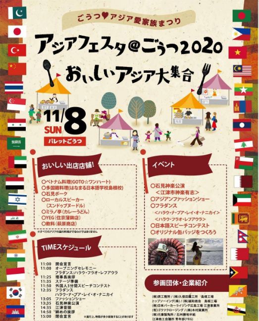 “アジアフェスタ@ごうつ2020”が、江津市駅前のパレットごうつで開催され、ちょっと覗いてきました。