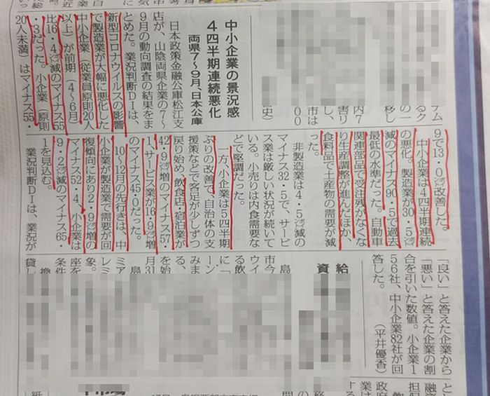 山陰地区の7月~9月の中小企業の景況感が日本政策金融公庫松江支店から発表された。と。