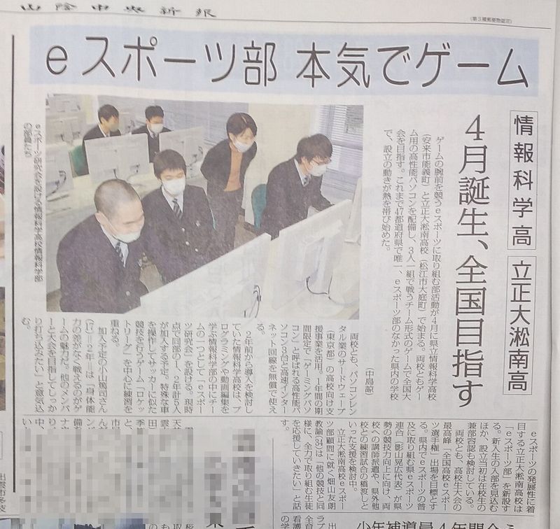 県内の高校にeスポーツ部が発足する。と。