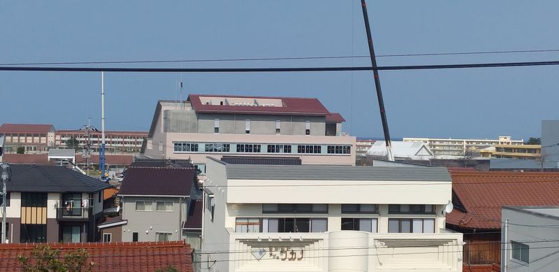 更に、その奥の左側の茶色い建物が江津中学校、右側の白い建物が江津工業高校です。