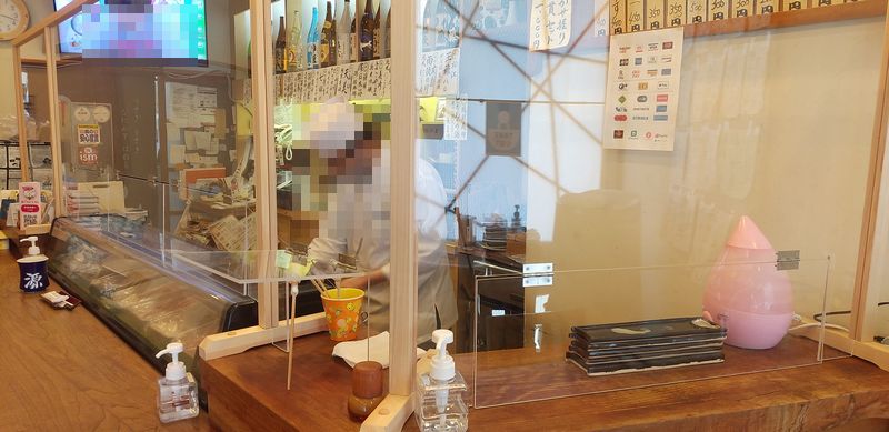 カウンター席とカウンター内の間に完ぺきな仕切りがあり、開閉できる小窓が付いていました。