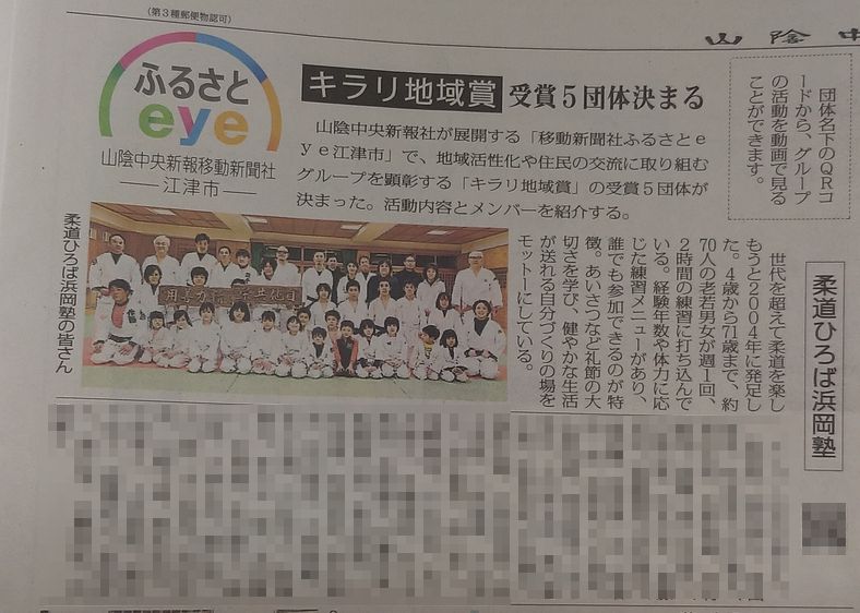 地元新聞の山陰中央新報に、キラリ地域賞(江津市の部)の発表が行われていました。