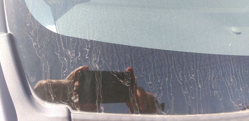 フロントウォッシャーし、一走りした後のフロントガラス下部