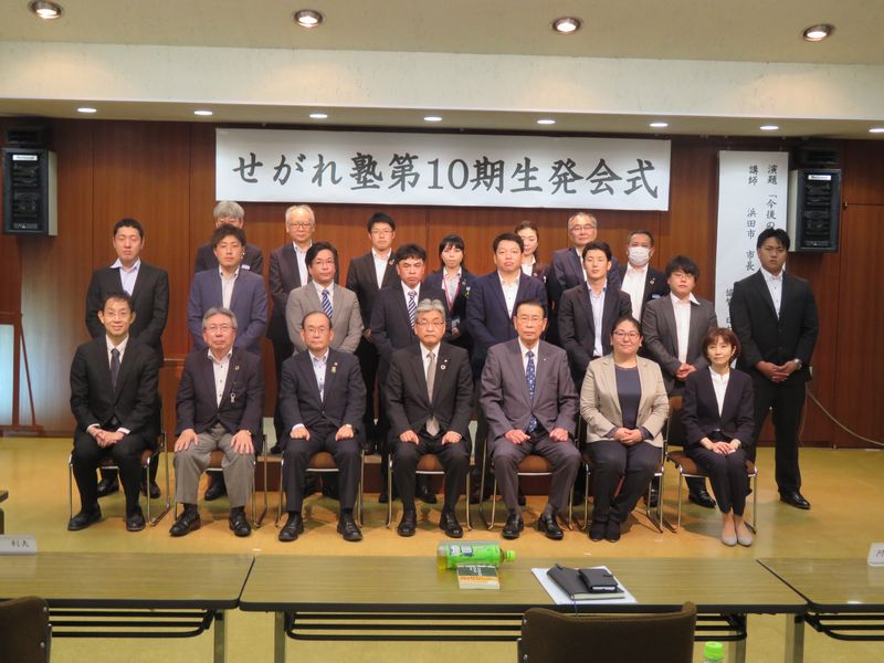 今日は、午前中、市内の某企業の新入社員研修の第4回目をおこない、午後からは浜田市に移動し、何度か報告しています日本海信用金庫のせがれ塾の10期生の入会式に、講師の1人としてご招待を頂き出席しました。
