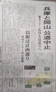 お隣の鳥取県では、県の枠で走ってもらう予定であった、芸能人とオリンピアに辞退してもらった経緯があり、今回は県の枠以外で、走る芸能人に公道は走らない様にと、オリンピック委員会に求めている。と。