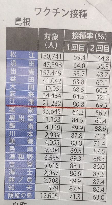 江津市は、1回終了80.8%、2回終了69.5%と再び順調に進んでいる様です。