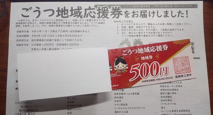 厚生労働省のHPに使用できる病院リストがあり、江津市ではまだ数か所。