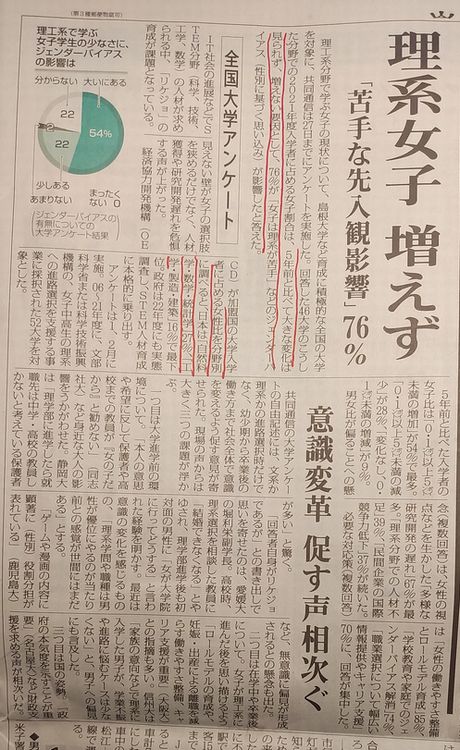 それとも、記事通り、「女子は理系が苦手」と言う思い込みでしょうか?