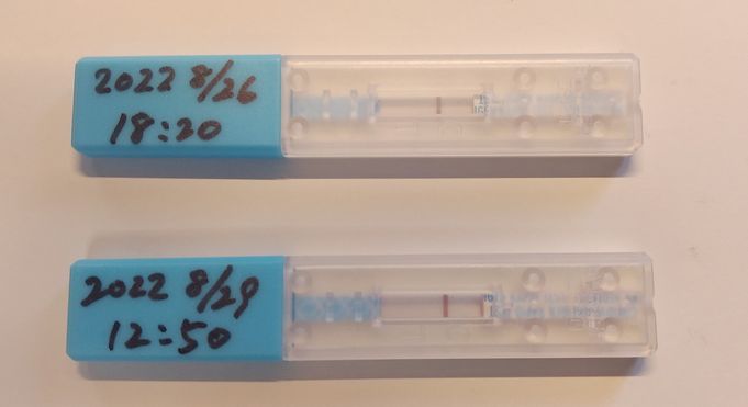 先週、報告した通り24日から26日まで公共交通機関を使って福井県に出張しましたので、帰宅時に簡易型の抗原検査キットで陰性を確認した旨報告しました。