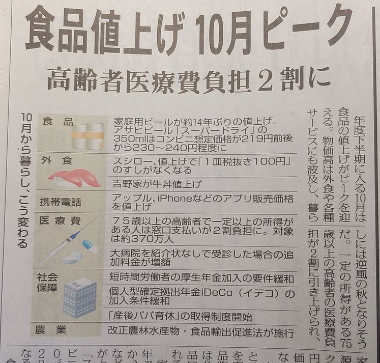 併せて、食品の値上げを筆頭に、色々な変化がある様です。