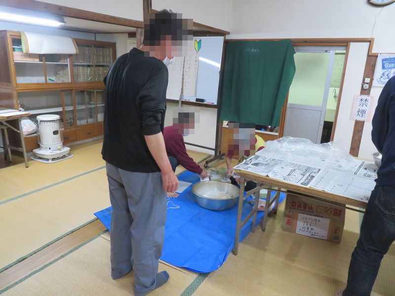 夕方から、町内の集会所で、ゴキブリ団子作り。
