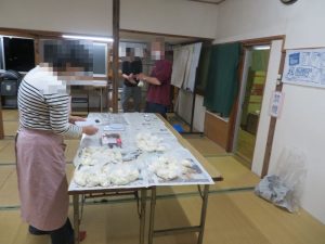 出来たものを、各家庭に配布する為に、220g程度に袋詰め。