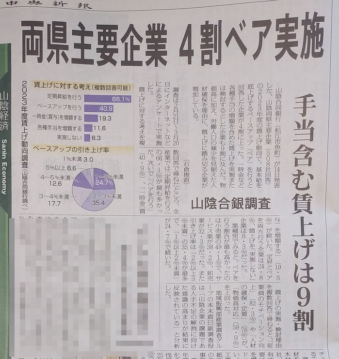 島根県からの人口流出の一番の原因は、都市部との賃金格差と日銀が報告している事もあり、この対応は歓迎ですが、企業側と調整しながら、上昇率を決めて頂きたいと思います。