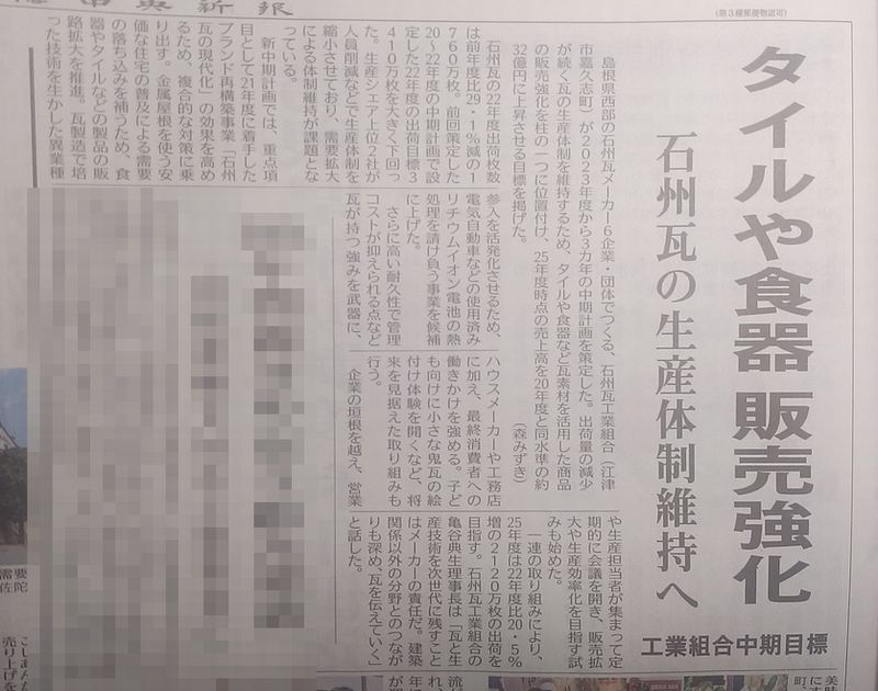 石州瓦工業組合が、3か年の中期計画を策定した。と。