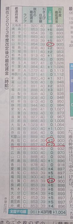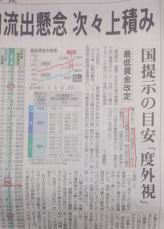 今朝の朝刊に、全国の最低賃金の件でのニュースがありました。