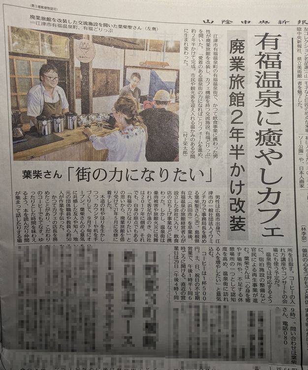 記事内に出てくる彼とは、昔からの知り合いで、数年前には、この計画を持って、江津市ビジネスコンテストに参加しており、市内では多くの方が、知っている取り組みかと・・・。