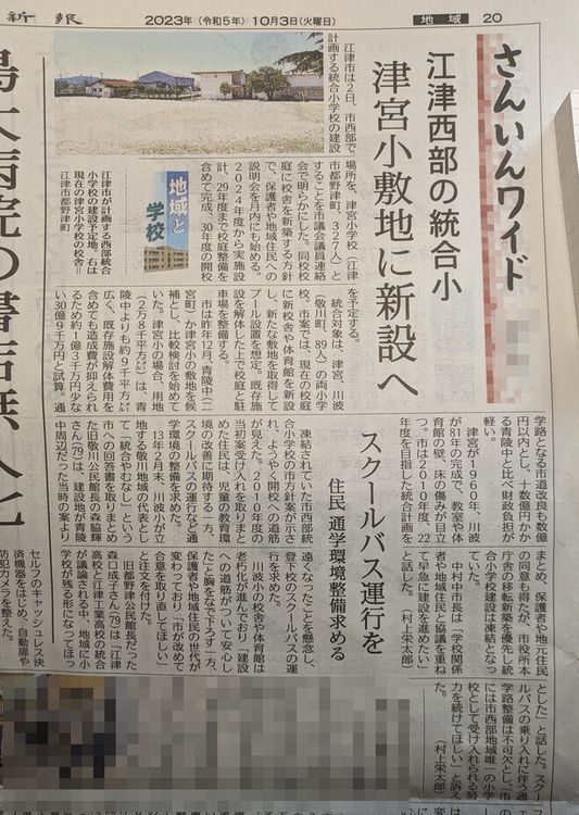 江津市の西部地区の小学校の統合で、その校舎を現津宮小学校の敷地に新設する。と。