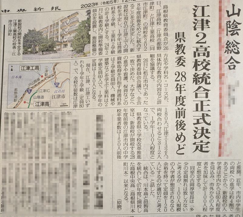 江津高校と江津工業高校の統合が正式に決定した様です。