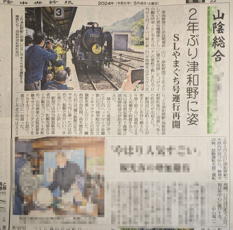 このSLは、2022年5月3日に津和野駅で、不具合が見つかり修理に入っていたとの事です。