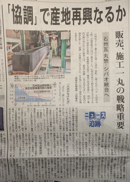 先日、報告した石州瓦の生産高第1位と第2位の連携に対する、今後の推測等の記事がありました。