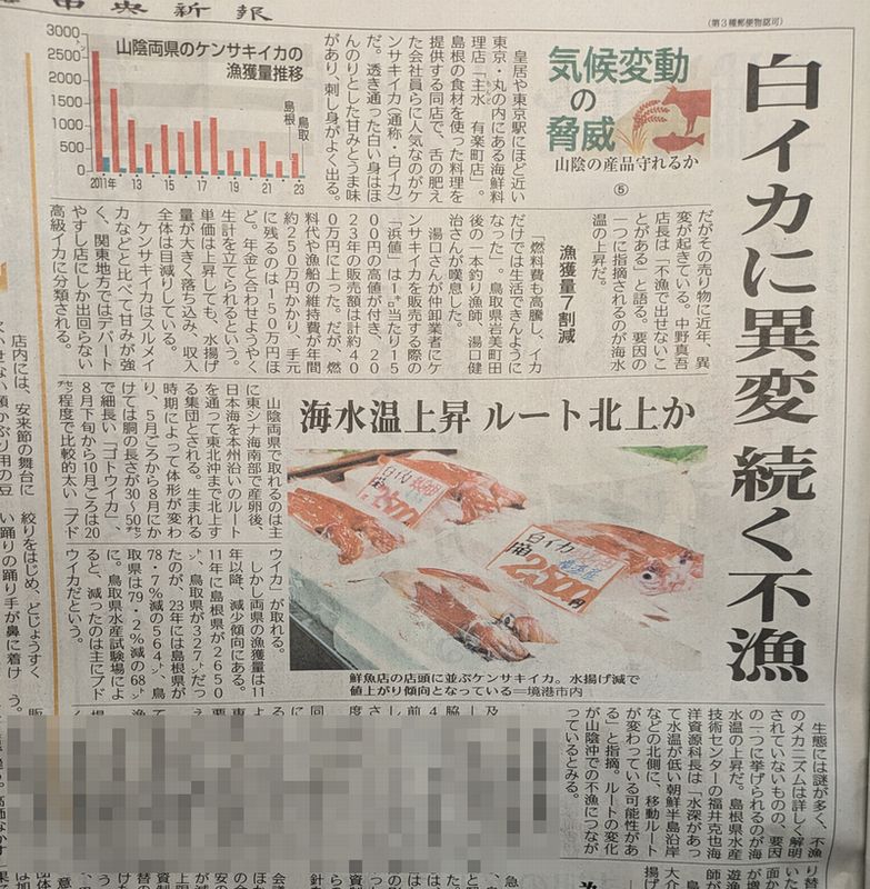 山陰両県の白イカ(剣先イカ)の不漁が続いている。と。