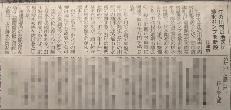 新聞記事によると、江津市渡津地区(私の住んでいる所から江の川の対岸地区)の内水氾濫を防ぐための排水ポンプを6基設置する。と。