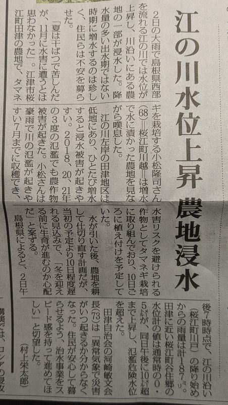 午前中に、桜江町付近で、江の川の水位が上昇し、高齢者等避難指示が出された様です。