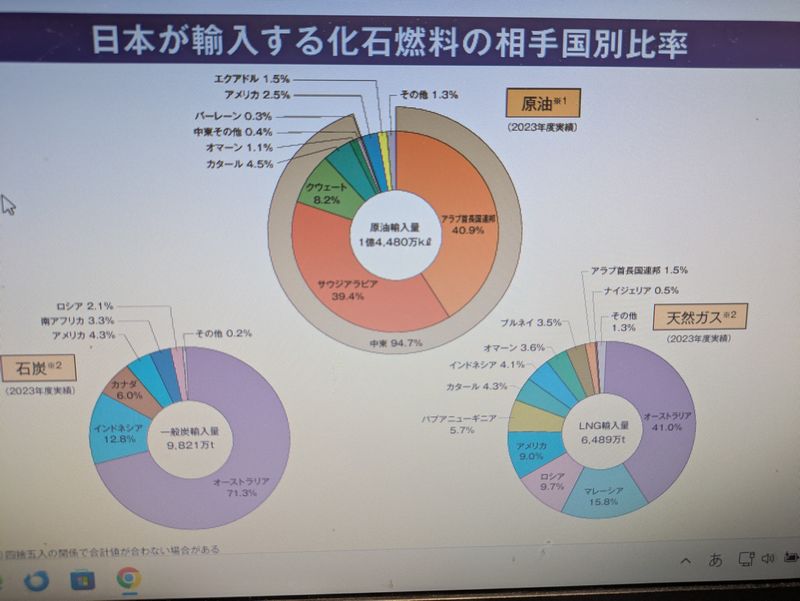 日本の最近の原油輸入国を見ると、やはり中東からが94.7%(2023年のデーター)と、圧倒的に多いです。