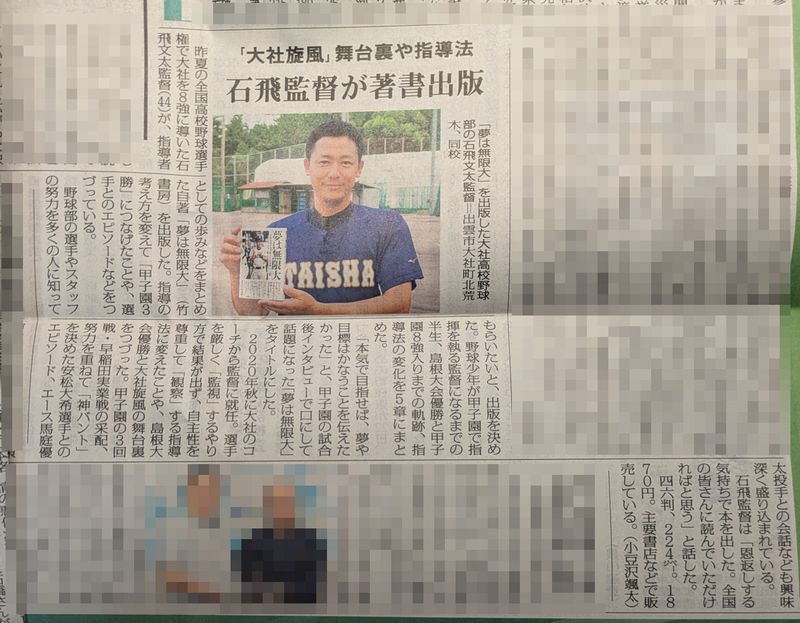 昨年の夏の甲子園で「大社旋風 」を巻き起こした、石飛監督が、「夢は無限大」と題した本を出版した。と。