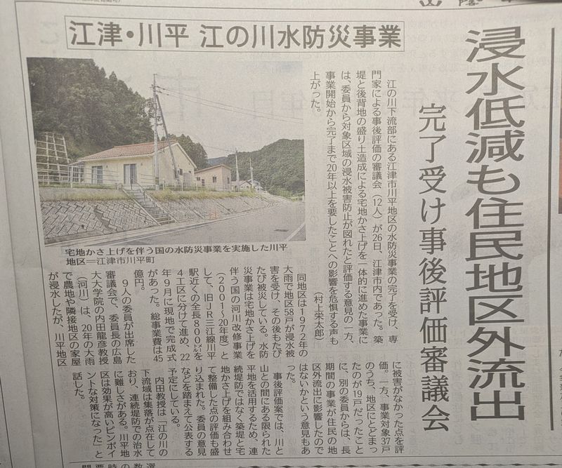 江の川沿いの川平地区の住民地区外流出を受けて、事後評価審議会が開催された。と。