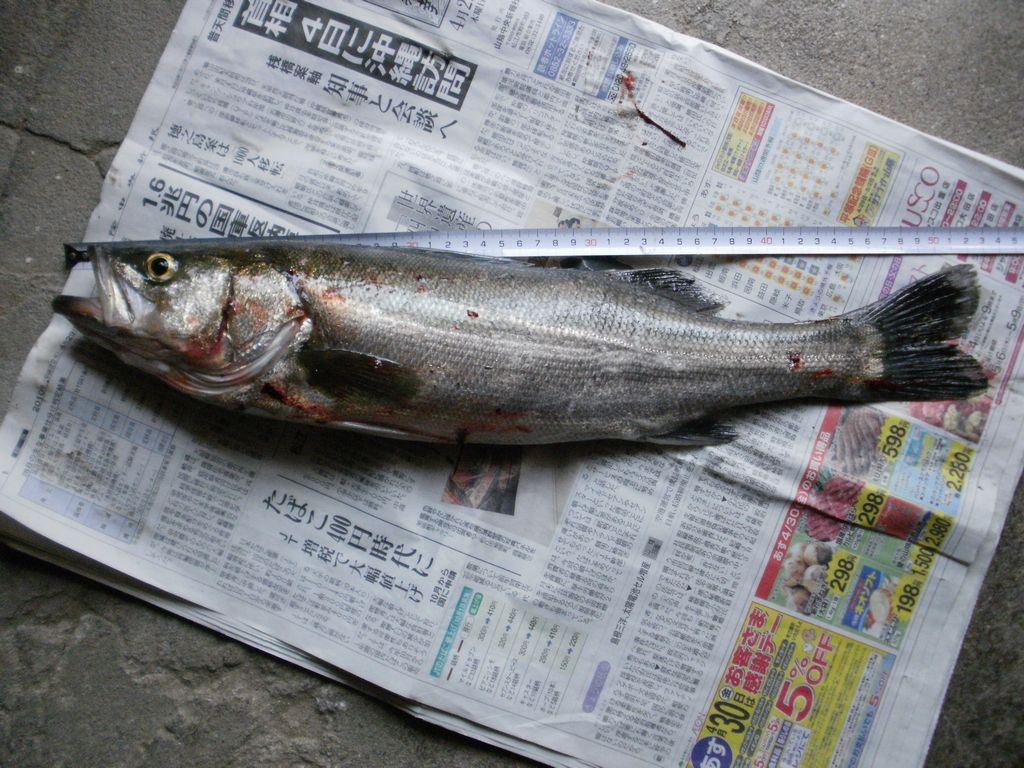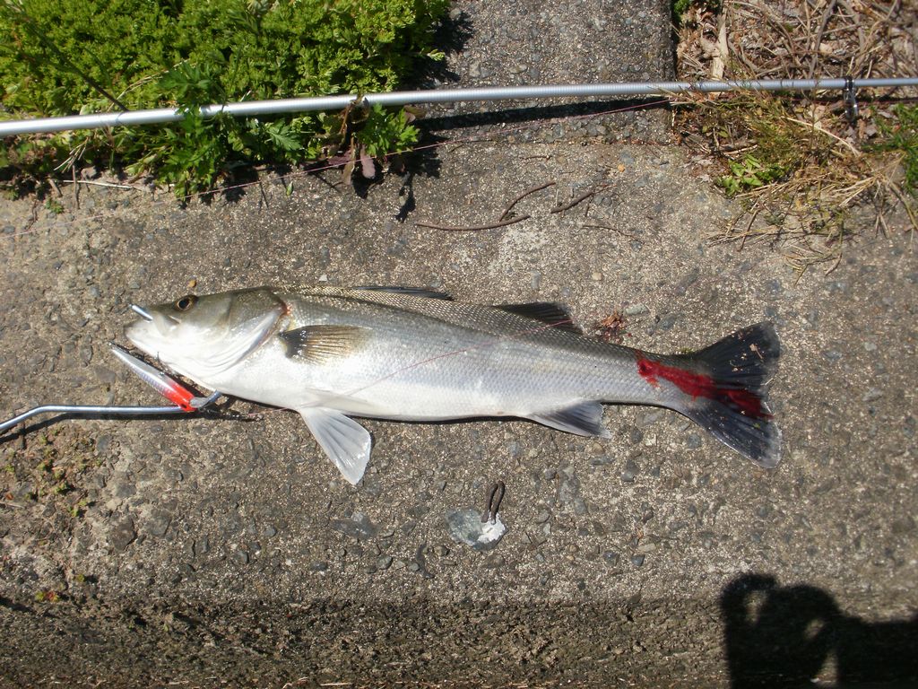 ルアーにての初釣果は、まずまずのスズキ。おめでとうございます。