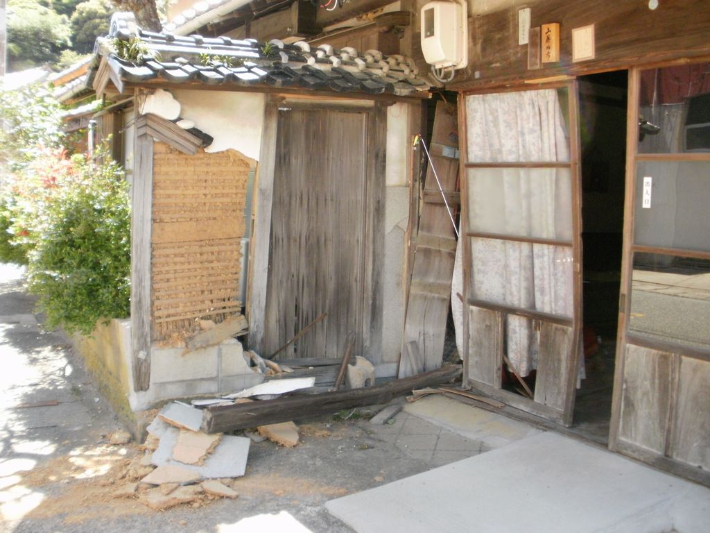 「とりあえず、今晩の戸締りを考えて応急処置をします。土壁の土はそのまま使いますので持ち帰ります。」