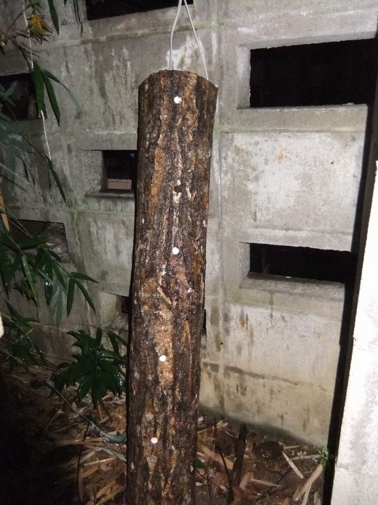 椎茸竹栽培には、水の掛け過ぎに注意し、上手に育て美味しく召上って下さい・・・??