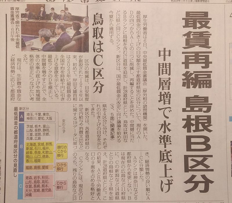 島根県からの人口流出の一番の原因は、都市部との賃金格差と日銀が報告している事もあり、この対応は歓迎ですが、企業側と調整しながら、上昇率を決めて頂きたいと思います。